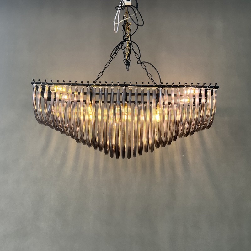 Тип: Люстра Цвет: черный + прозрачный / смок Материал: металл + стекло Диаметр: 100см Высота: 43см Ширина: 32см Тип цоколя: E14*10 Размер упаковки: 112*100*54см Вес: 23.3кг.